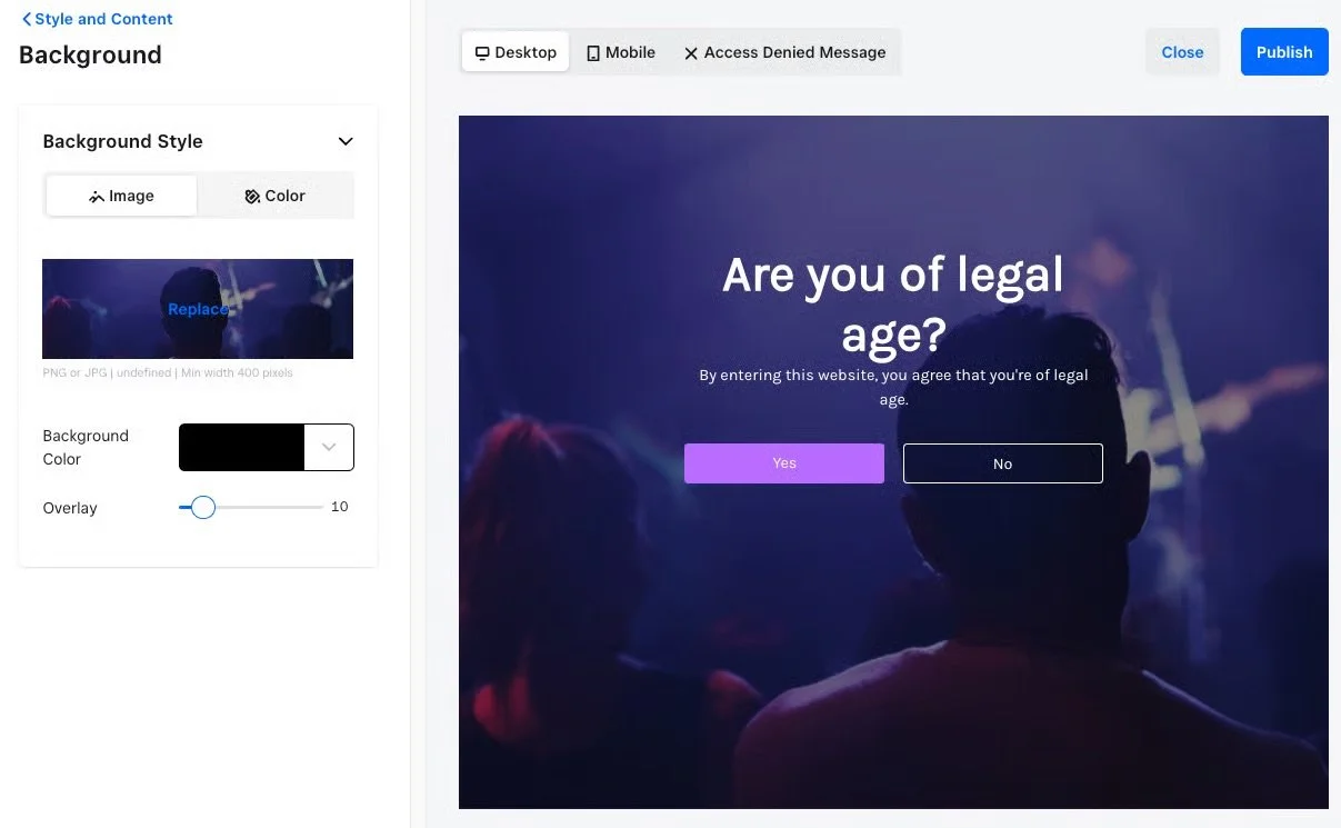 Age Verification Pop-Up: Ensure compliance and restrict access to certain content.
