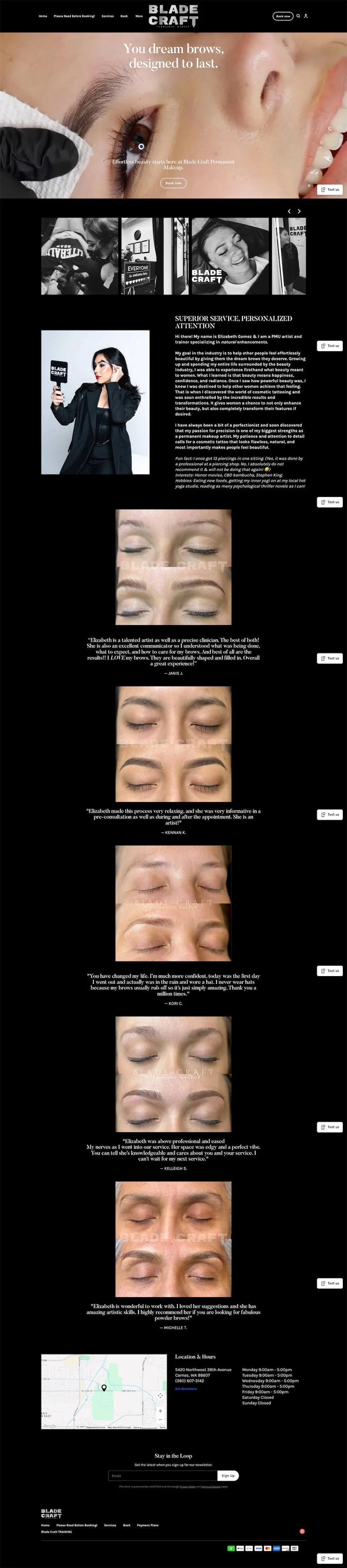 This is one of those sites that makes you stop scrolling. The video background draws you in immediately and it looks amazing on mobile. Paired with before and after photos that show dramatic transformations, the site gives clients confidence before they ever book.